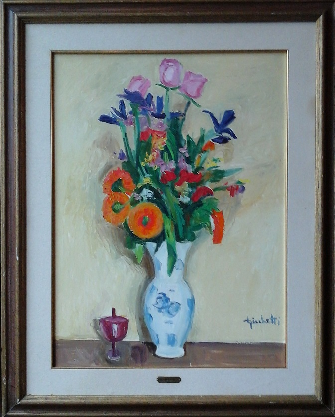 Luciano Ricchetti - Vaso di fiori - Olio su tela cm.80x60 - firmato in basso a destra