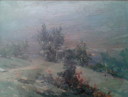 Ernesto Giacobbi - Paesaggio - Olio su tavola cm.32x43, firmato in basso a...