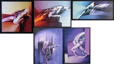 Patrizia Masserini - Atteggiamento libero 4-5-6 1989 - Trittico di oli su...