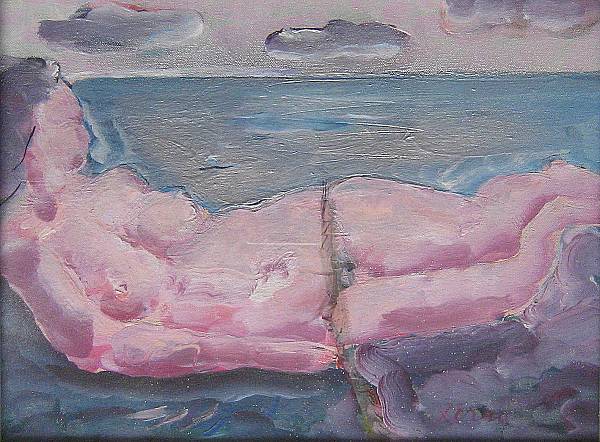 William Xerra - Sulla spiaggia - Olio su tela cm.30x40 - firmato in basso a destra