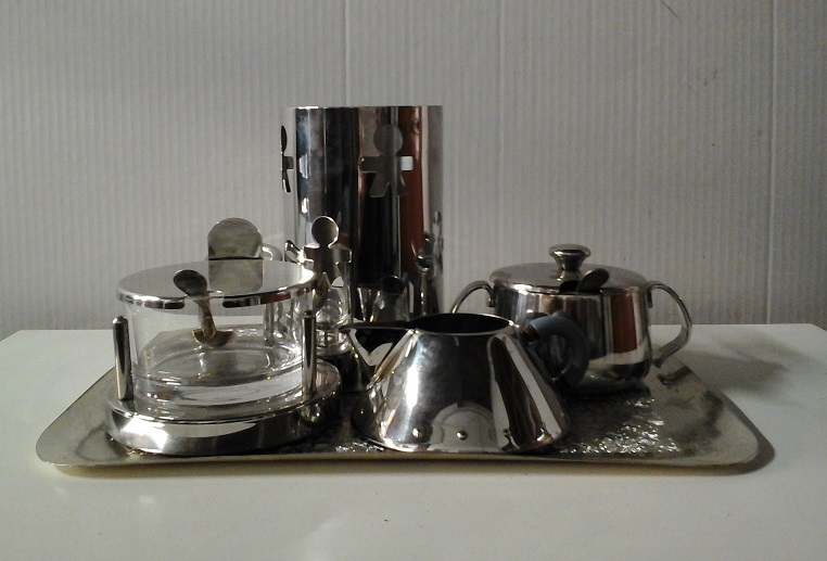 Vassoio, zuccheriera, lattiera, formaggera e porta-grissini Alessi - acciaio