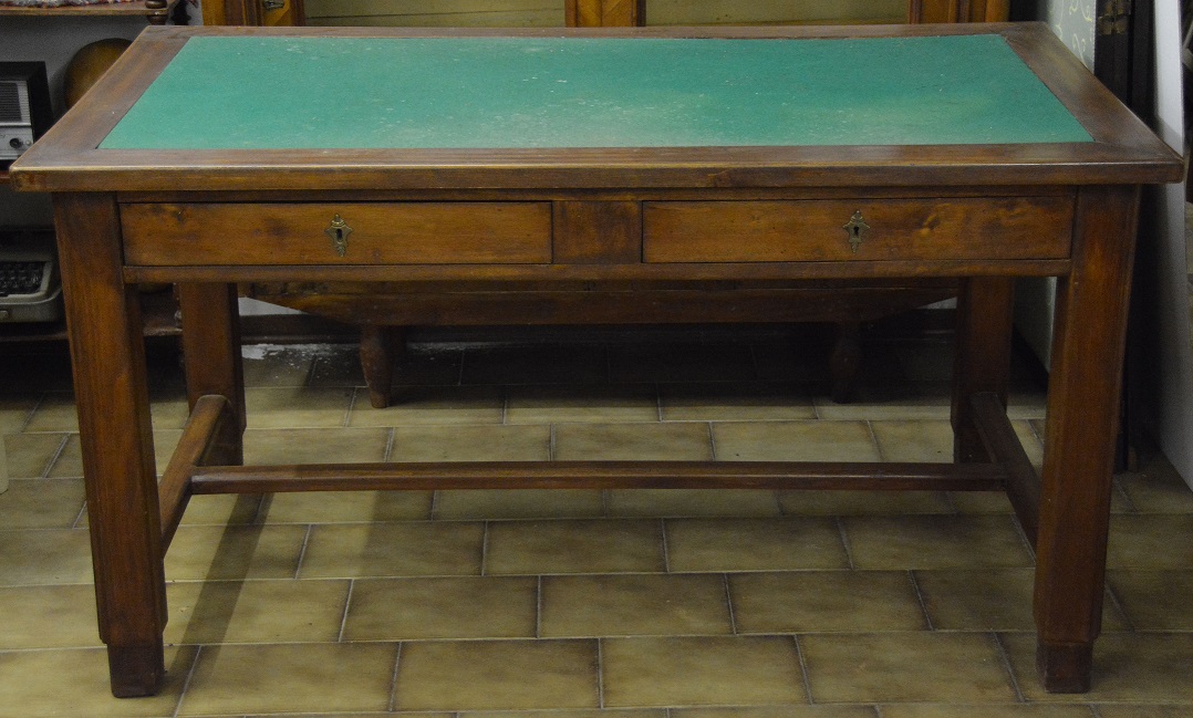 Tavolo scrittoio Liberty in legno con piano in panno verde cm.150x84x81