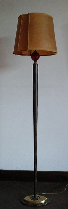 Lampada da terra in metallo e vetro rosso - con paralume h.cm.170 - difetti...