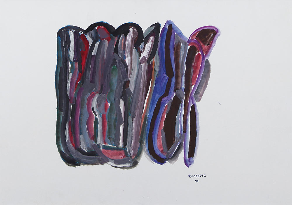 PIETRO CONSAGRA Mazara del Vallo (TP) 04/10/1920 - 16/07/2005 Senza titolo, 1996 tecnica mista su carta intelata cm. 33x47,5; firma e anno in basso a destra, dichiarazione d'autenticità dell'artista su foto.