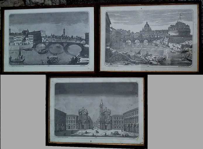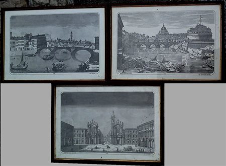 Tre riproduzioni di stampe di città Firenze - Roma - Torino cm.27x39