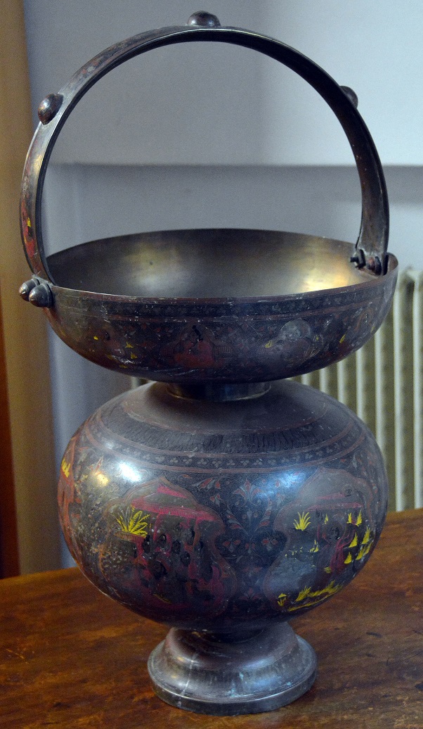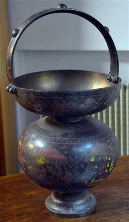 Arte orientale - Vaso con manico in metallo dipinto cm. 35x70
