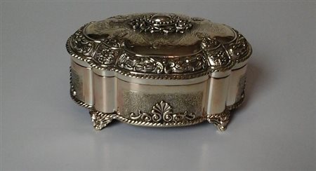 Cofanetto portagioie in metallo sbalzato e argentato cm.13,3x10x7