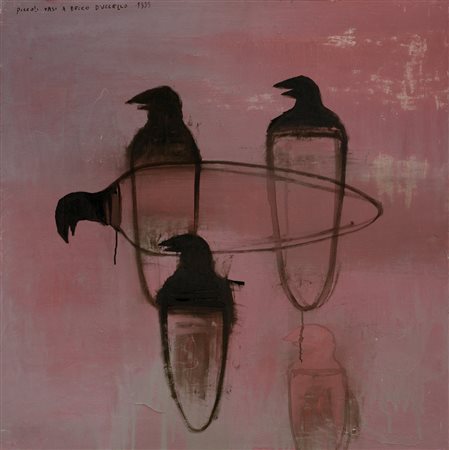 PIERO PIZZI CANNELLA Roma 1955 Piccoli vasi a becco d'uccello, 1999 tecnica mista su tavola cm. 75x75, titolo e anno in alto a sinistra, firma, anno e timbro della Galerie Vidal-Saint Pralle (Paris) al retro, opera registrata presso l'Archivio Generale dell'opera di Piero Pizzi Cannella come da fotografia allegato, opera priva di cornice.