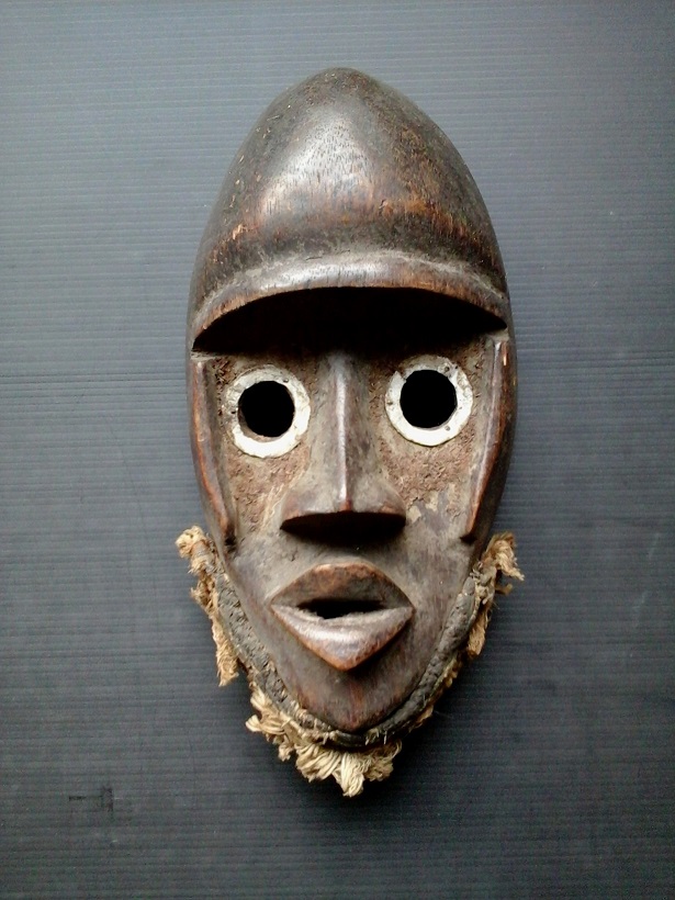 Maschera Gunyege - Etnia Dan - Costa d'Avorio - legno con patina, metallo e fibre h.cm.26