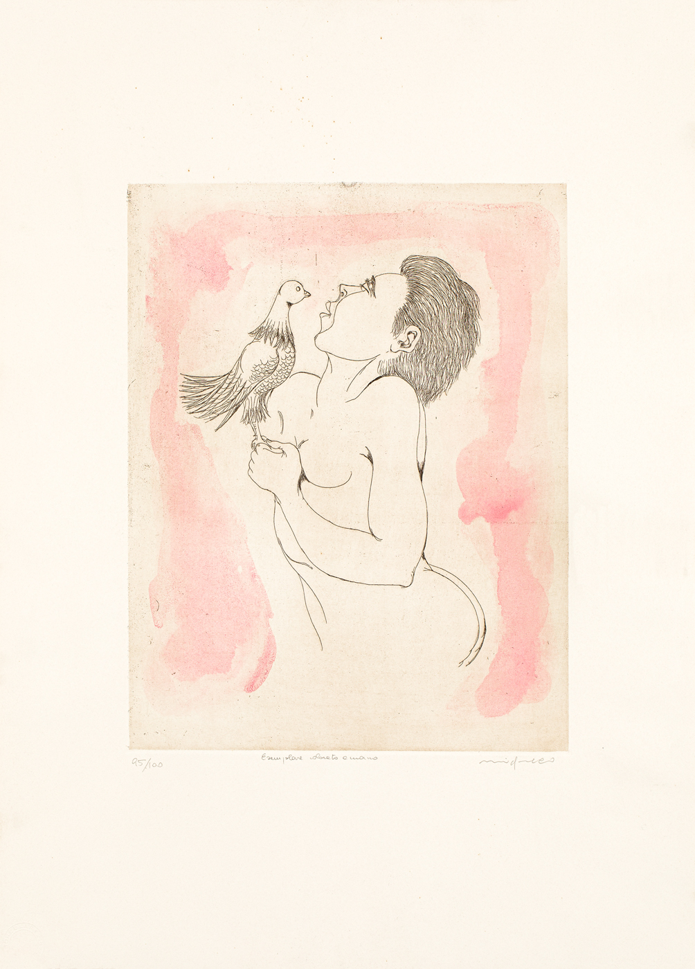 Firma, numerazione (Esemplare 95/100) e iscrizione 'Esemplare colorato a mano' a matita al fronte