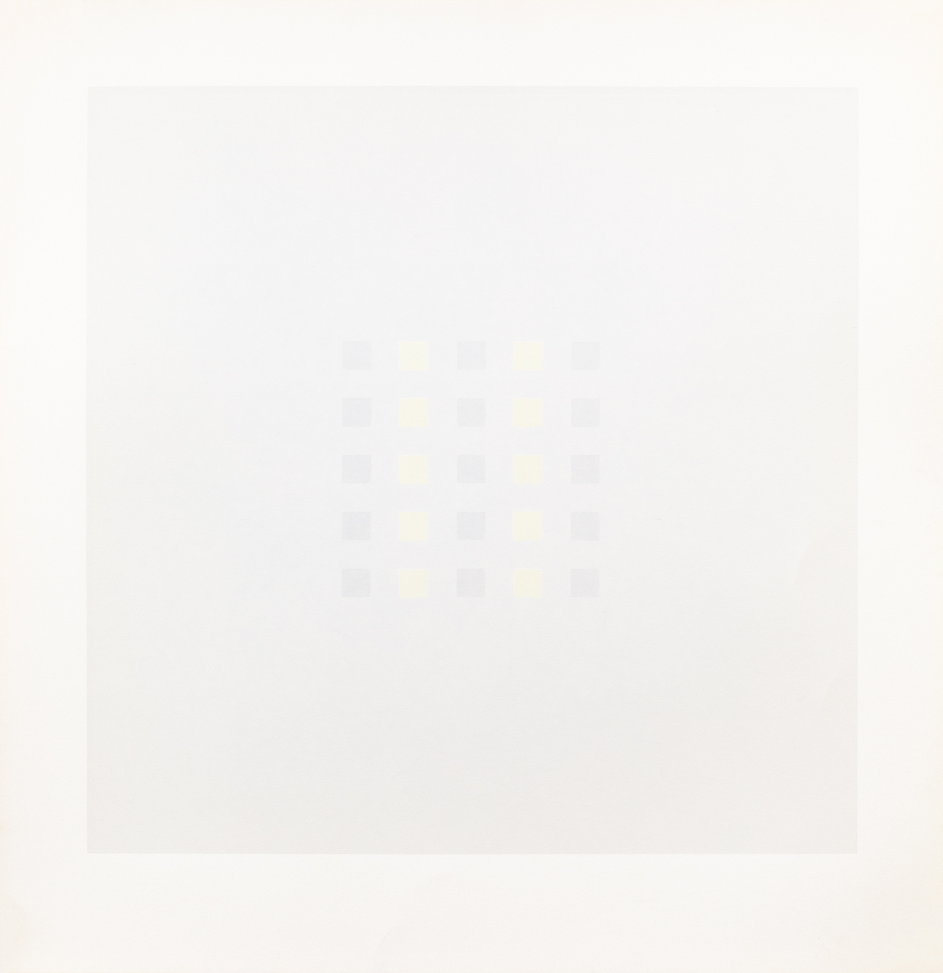 Opera originariamente facente parte della cartella 'Quadrato e quadrati nel quadrato' composta da 7 serigrafie e un testo di Antonio Calderara, edita da Sergio Tosi, Milano, 1972