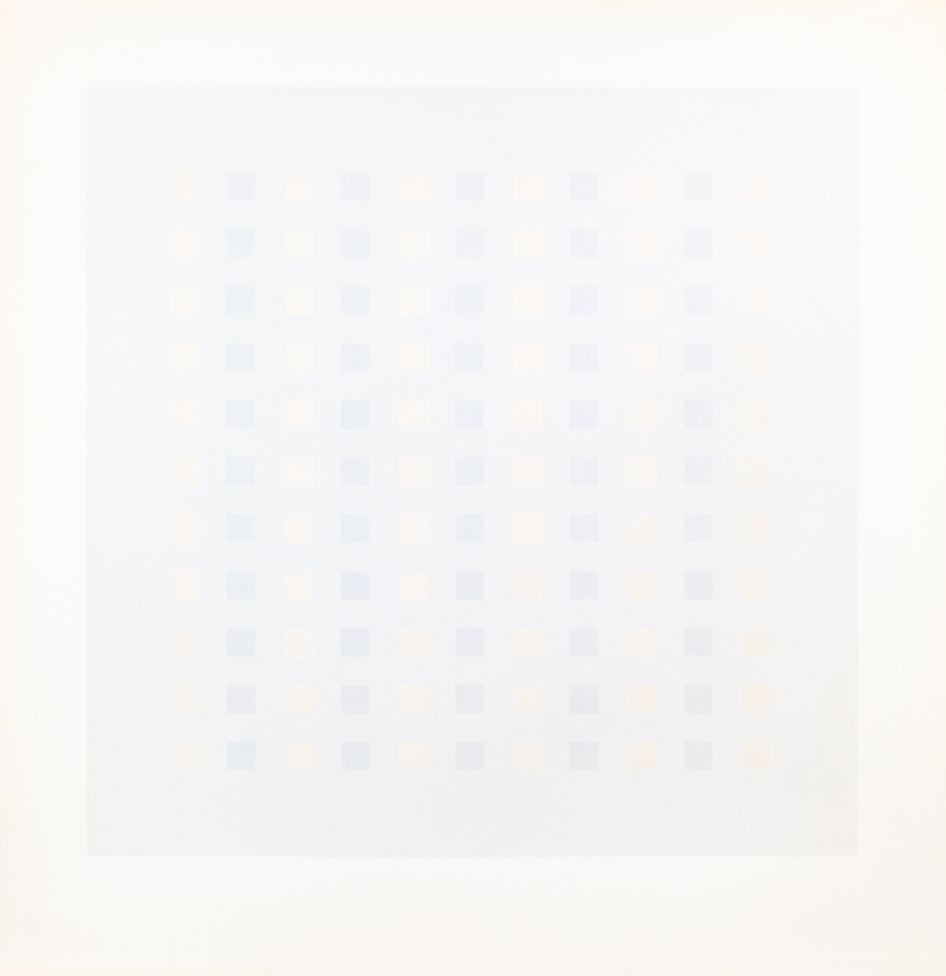 Opera originariamente facente parte della cartella 'Quadrato e quadrati nel quadrato' composta da 7 serigrafie e un testo di Antonio Calderara, edita da Sergio Tosi, Milano, 1972