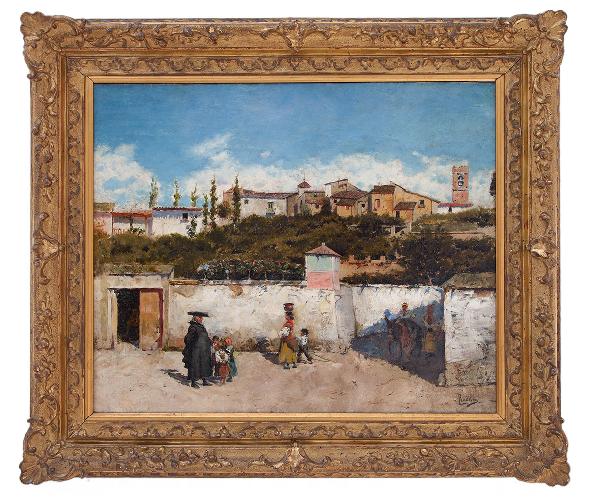Francisco Pradilla Spagna 1848 - 1921 Scena di vita paesana olio su tela cm 40,5x50