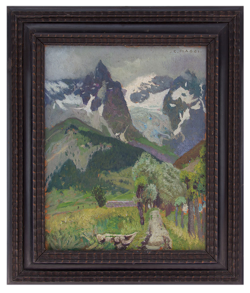 Cesare Maggi Roma 1861 - Torino 1961 Neve in alta montagna Olio su tavola cm 44,5x35