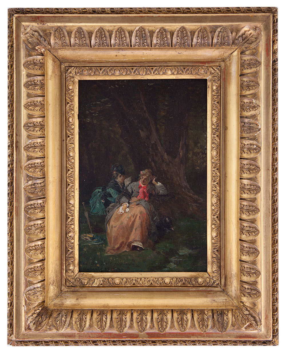 Carlo Pittara Torino 1835 - Rivara 1890 Confidenze Olio su tavola cm 25.5x16.5
