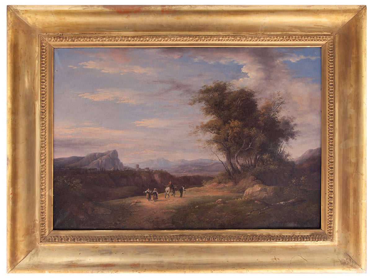 Pietro Ronzoni Sedrina 1781 - Bergamo 1862 Paesaggio con Viandanti olio su tela cm 45x63