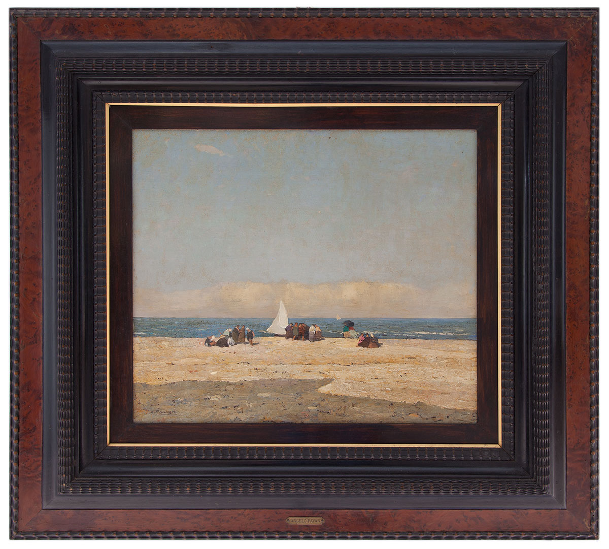 Angelo Pavan Vicenza 1893 - Venezia 1945 Venditori ambulanti sulla spiaggia olio su compensato cm 40x45.5