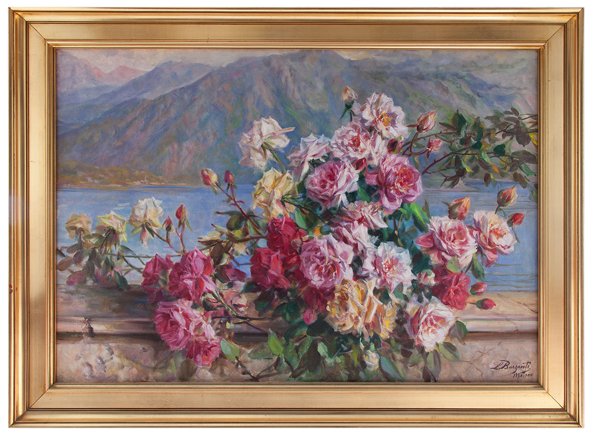 Licinio Barzanti Forli 1857 - Como 1944 Rose sul lago di Como olio su tela cm 70x100