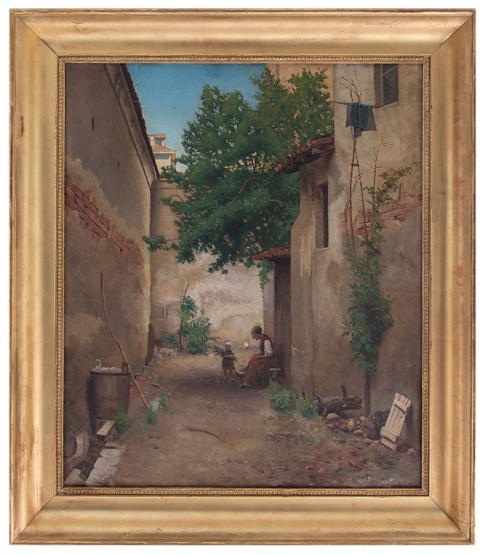 Guido Carmagnani Parma 1838 - Milano 1909 Pomeriggi in Cortile olio su tela cm 75.5x65.7