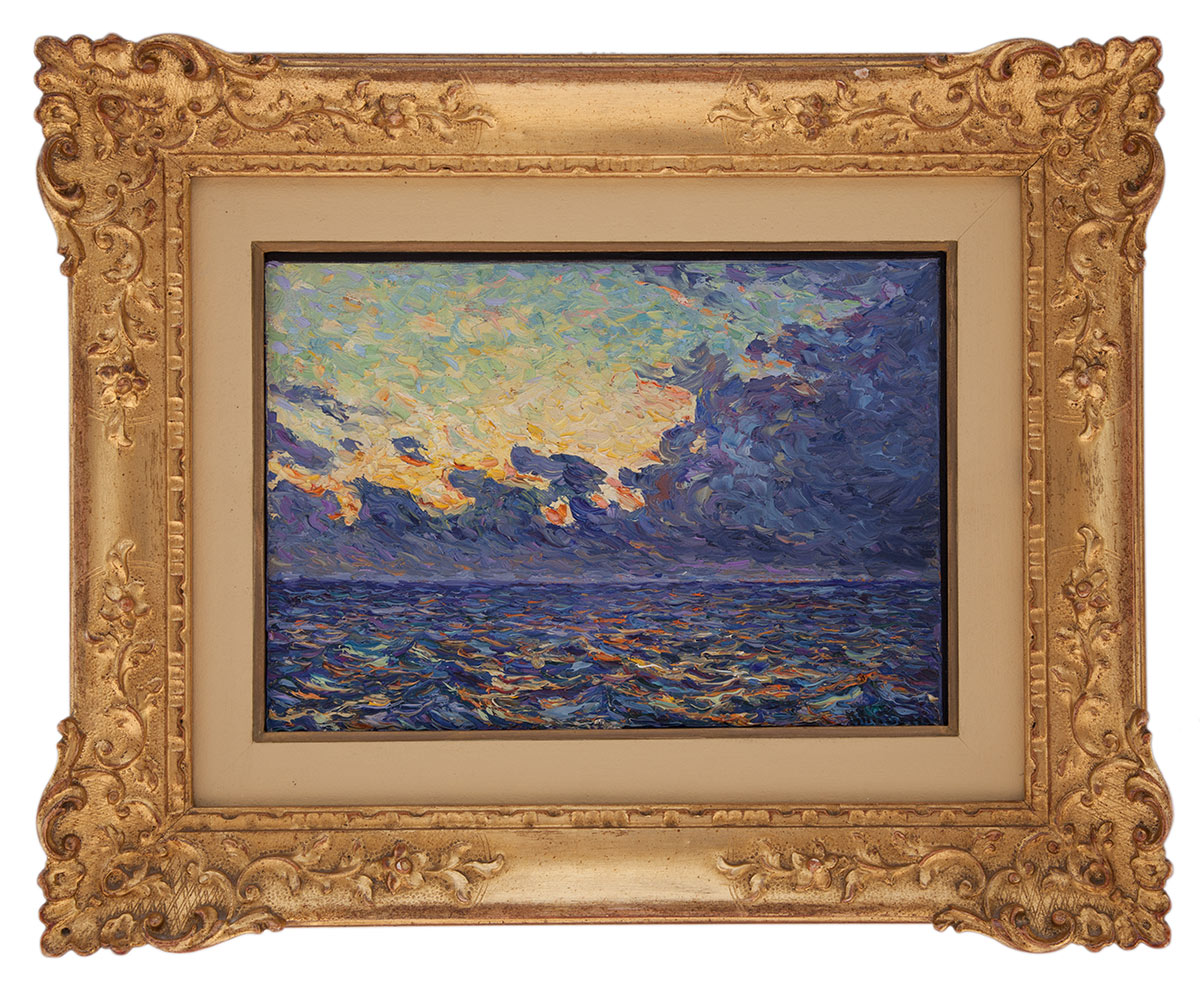 Filiberto Minozzi Verona 1877 - Milano 1936 Tramonto indiano olio su tavola cm 20.5x28.5