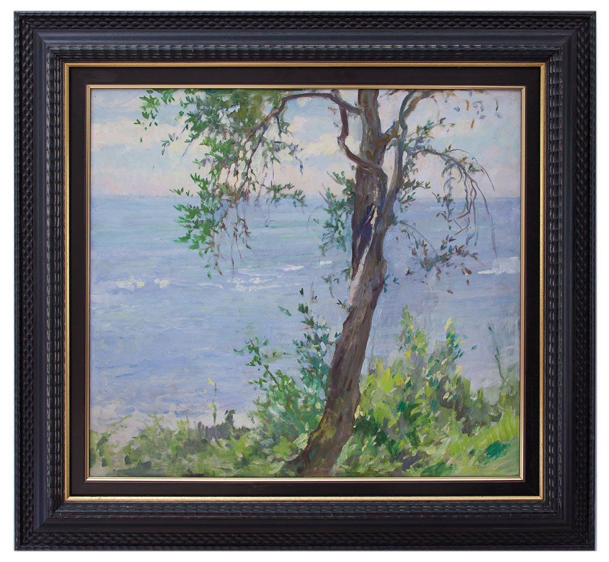 Antonio Discovolo Bologna 1874 - Brugnolo 1956 L'ulivo sul mare olio su masonite cm 56.2x62.7