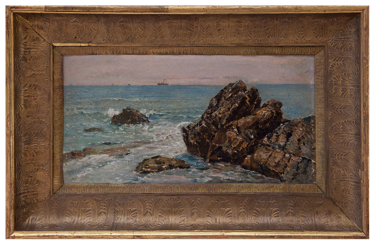 Edoardo Monteforte Polla 1849 - Napoli 1933 Scogli a Boccadasse, Genova olio su tavola cm 28.5x14.5
