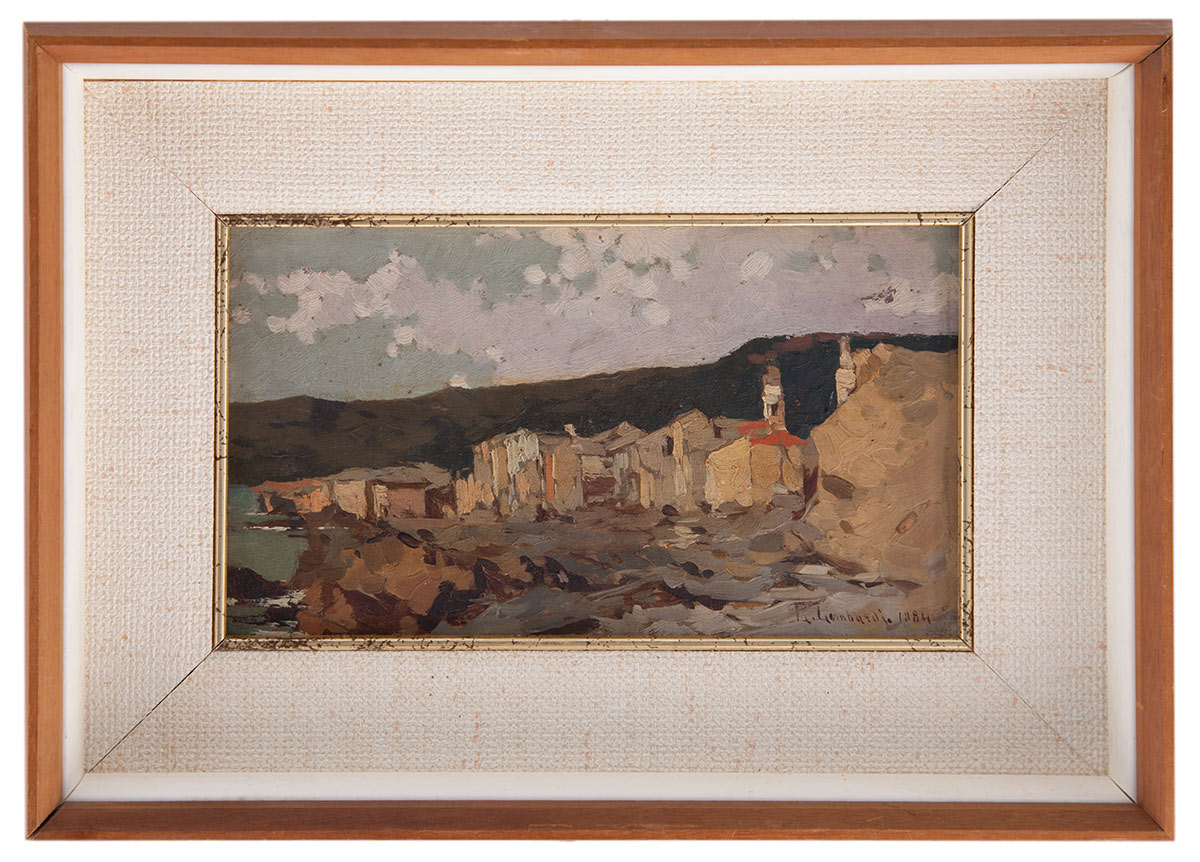 Luigi Lombardi Brescia 1853 - Darfo 1940 Veduta di Oneglia olio su tavoletta cm 12.3x21