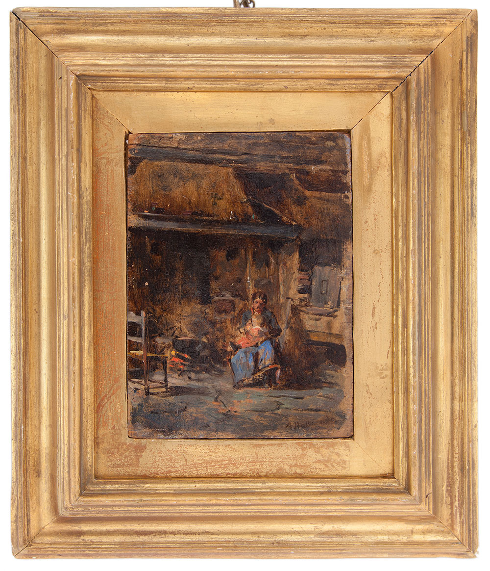 Alfonso Hollaender Ratisbona 1845 - Firenze 1923 Maternità olio su tavola cm 15.7x11.5