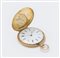 OROLOGIO DA TASCA. In oro giallo, quadrante smaltato bianco, decorato con...