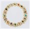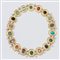 COLLANA IN ORO GIALLO cesellata a sbalzo, realizzata ad una fila di diciotto formelle geometriche decorate con corniola, ametista, onice, smeraldo, tormalina, turchese, pasta vitrea e perle di acqua dolce. Peso complessivo: 102,74 grammi. Gioiello firmato e datato al retro Brunetti Francesco 82/83. Gioiello esposto nella mostra "Il racconto della materia", Palazzo Garagnani, Crespellano di Valsamoggia, 22 settembre - 23 ottobre 2016. Gioiello pubblicato nel catalogo "Francesco Brunetti, il racconto della materia", 2016, pag. 77.