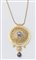 COLLANA IN ORO GIALLO, DIAMANTI E PERLE con catena sottile e grande pendente...
