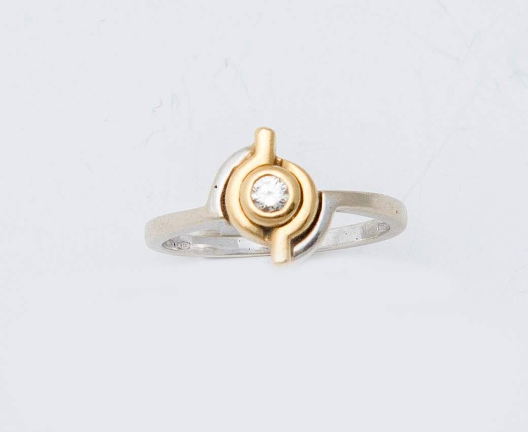 Lotto 74 | ANELLO IN ORO E DIAMANTE in oro giallo e bianco 18K, di linea sinuosa,...
