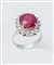 ANELLO CON RUBINO E DIAMANTI in oro bianco 18K, centrato da grande rubino...