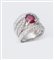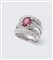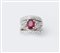 ANELLO CON RUBINO E DIAMANTI in oro bianco 18K, disegnato come una fascia...
