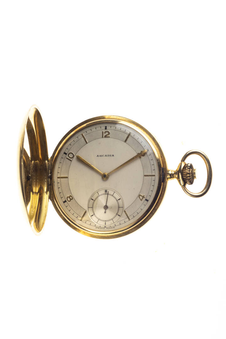 Cassa in oro giallo full hunter; cuvette interna in metallo dorato; quadrante in metallo smaltato