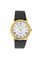 Cassa in oro con fondello a pressione. Quadrante bianco effetto smalto con indici applicati e numeri romani serigrafati. Indicazione dei secondi centrale e della data ad ore 3.