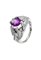 in oro bianco, sommità a cupola, con al centro ametista ovale, ai lati diamanti taglio brillante per totali ct 0,50 ca (due mancanti)
