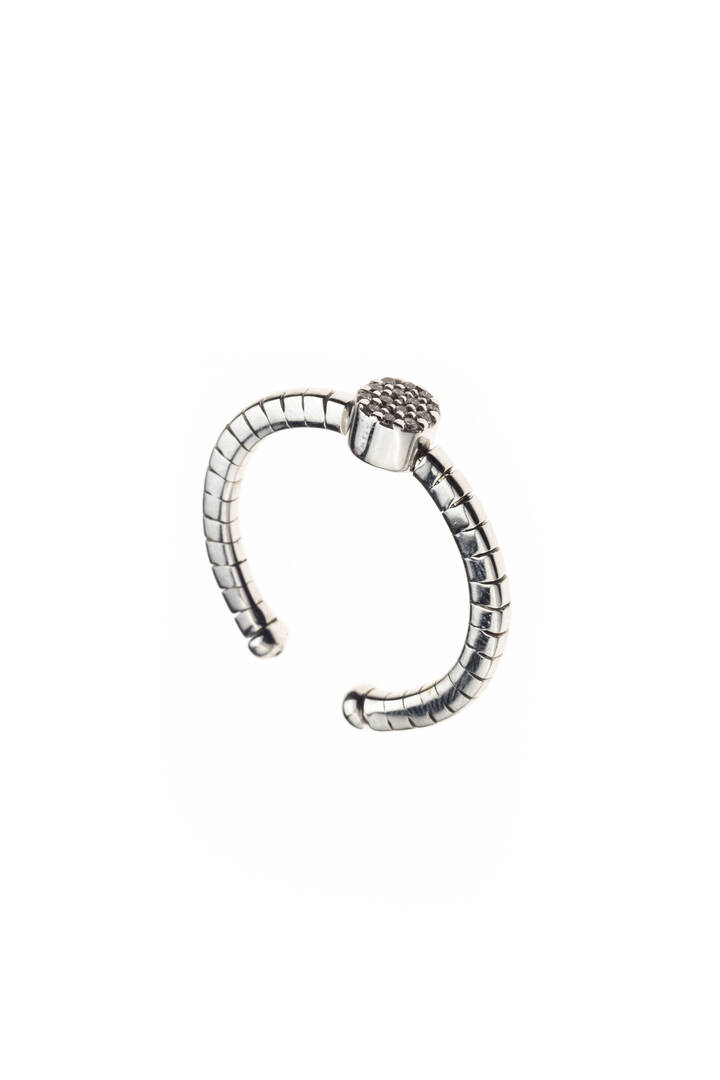 in oro bianco, sommità con pavé di diamanti taglio brillante per totali ct 0,07 ca