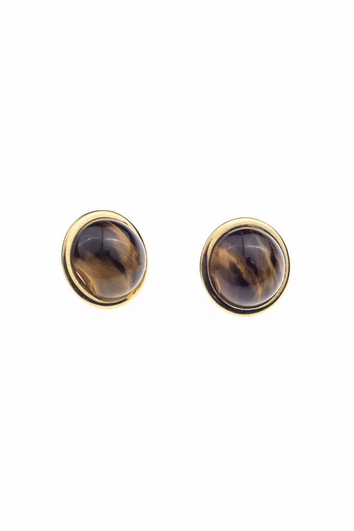 in oro giallo, a clip, con semisfere in occhio di tigre cabochon