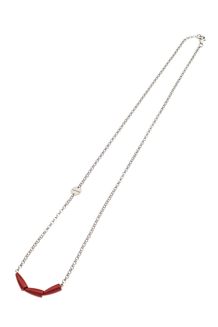 Girocollo in argento 925/1000, firmato "Vhernier", modello "Calla", con al centro tre elementi in pasta di corallo