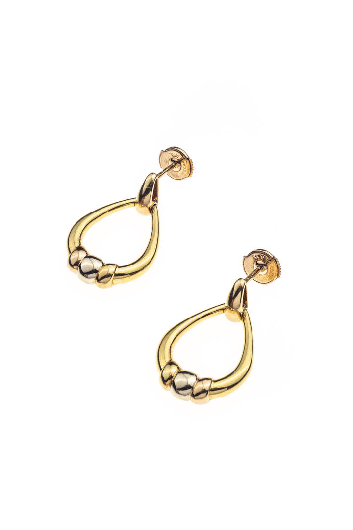 Coppia di orecchini, firmati "Cartier", in oro giallo e bianco, con ovali pendenti
