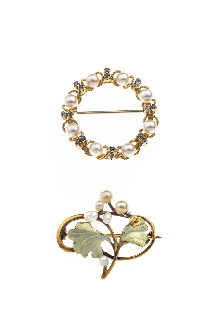 -in oro giallo, lavorata a tralcio d'uva con smalti (difetti e mancanze). Peso gr 6,3