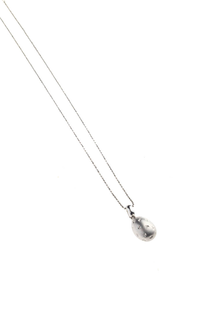 in oro bianco, a forma di goccia bombata, satinata con incise piccole stelline