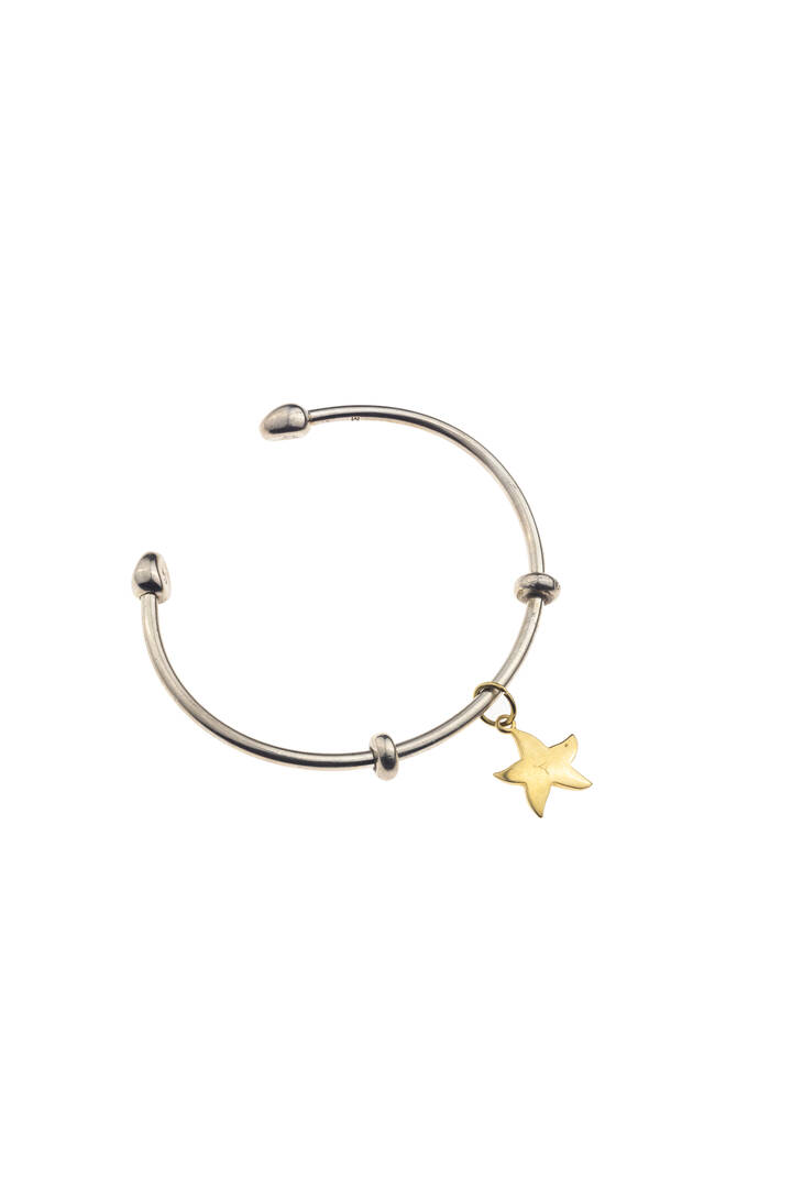 Bracciale rigido in argento 925/1000, firmato "Pomellato" linea "Dodo", recante un ciondolo pendente a forma di stella in oro giallo, linea "Dodo"
