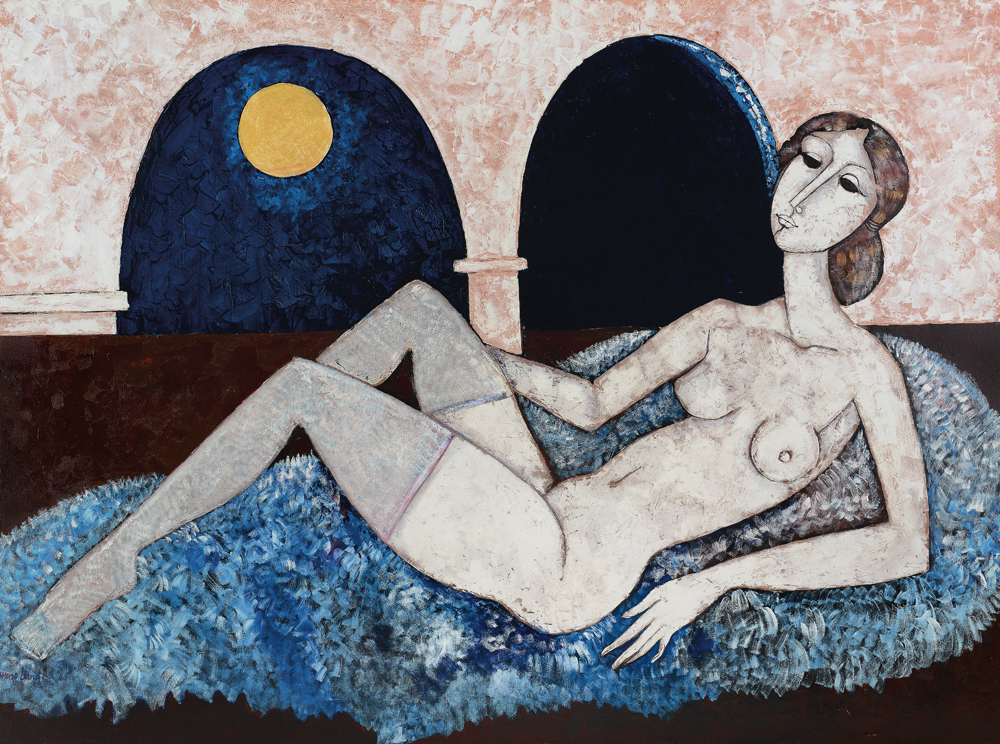 BRUNO LANDI Roma 23/03/1941 Il riposo di Venere olio su tela cm. 150x200, firma in basso a sinistra, titolo e firma al retro, dichiarazione d'autenticità dell'artista e archivio Meeting Art (VC) su foto, opera priva di cornice.