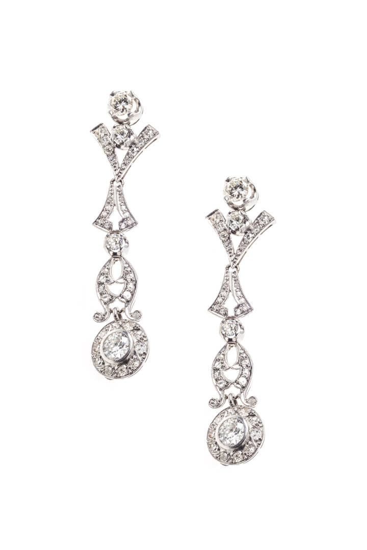 pendenti, in oro bianco, a vite, con diamanti taglio brillante di vecchio taglio, 8/8 e rosette per totali ct 2,50 ca