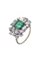 in oro bianco con al centro smeraldo taglio ottagonale a gradini di ct 1,90 ca ed ai lati diamanti taglio brillante per totali ct 2,0 ca, probabile colore G-H, purezza IF-VVS