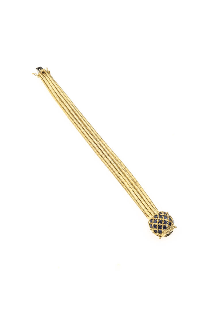 composto da sette fili in segmenti rigidi satinati, anni '50, con chiusura a "caramella", con zaffiri taglio rotondo per totali ct 2,0 ca