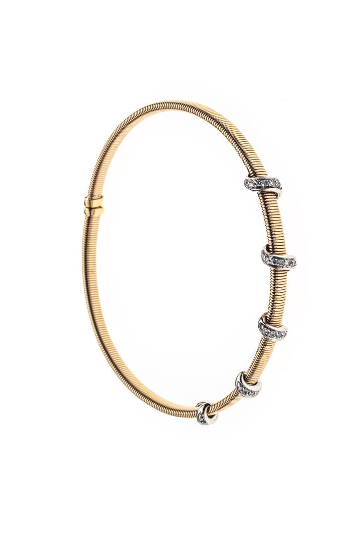 semirigido, in oro rosa, sommità con anelli in oro bianco con diamanti taglio brillante per totali ct 0,29 ca