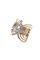 in oro rosa, sommità con fili trattenuto al centro da voluta in diamanti taglio brillante per totali ct 071 ca, probabile colore G-H, purezza IF-VVS
